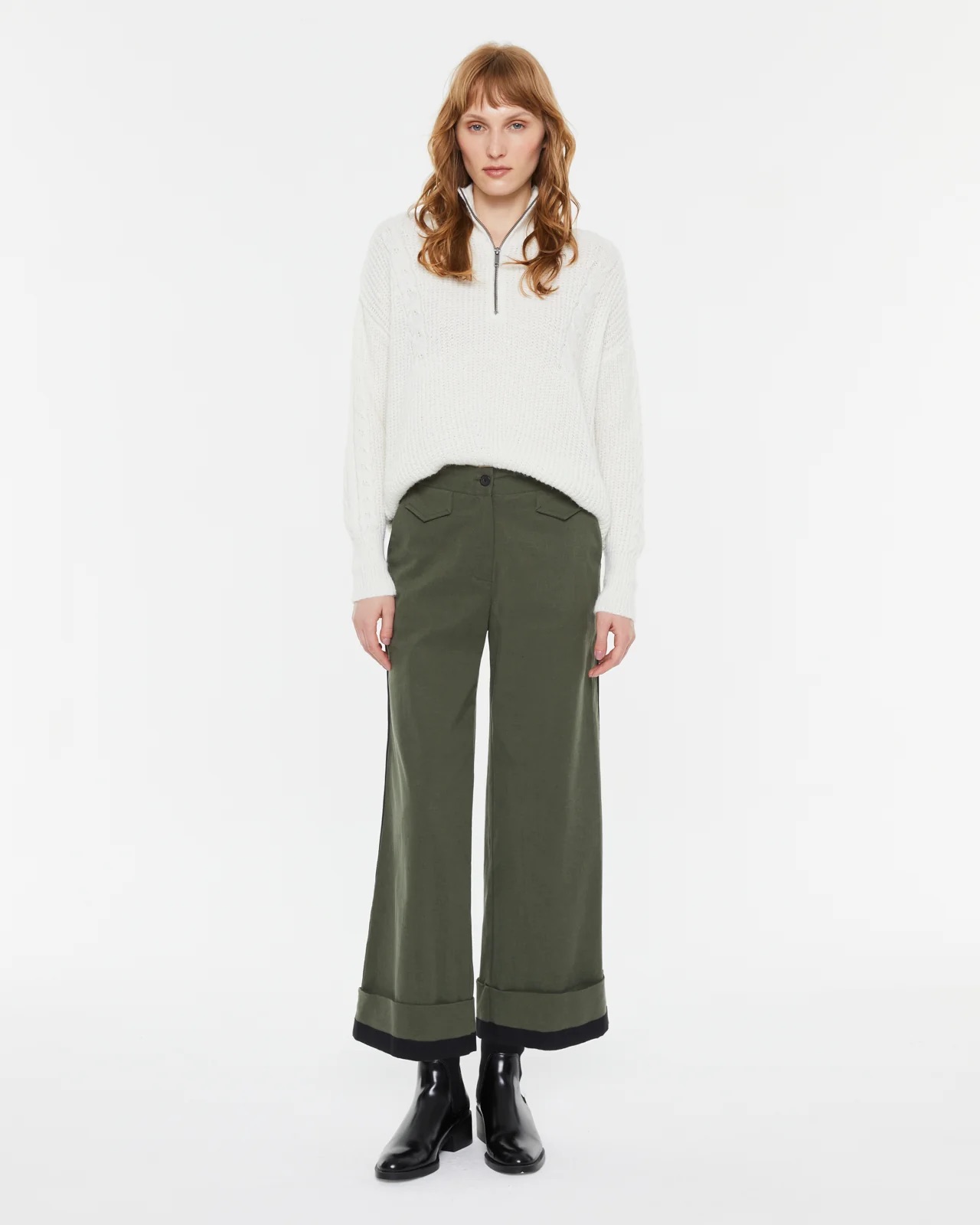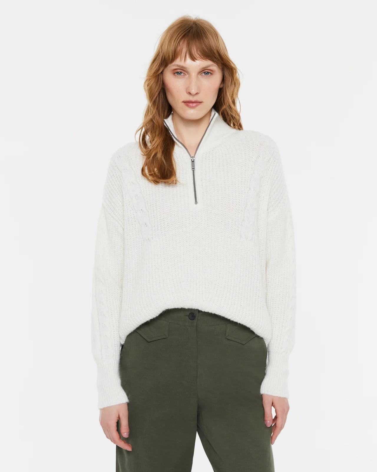 Jersey tipo polo de cuello perkins y cierre con cremallera metálica. Detalle de trenza en parte delantera y mangas. Regular fit.